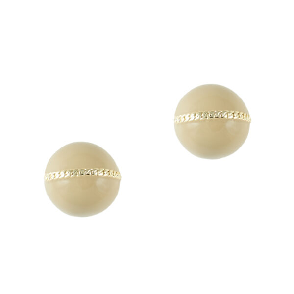 Μικρά, καρφωτά σκουλαρίκια σε σχήμα κουμπιού, σε μια παστέλ μπεζ απόχρωση που συνδυάζεται πολύ εύκολα. Η χρυσή κεντρική ρίγα του...