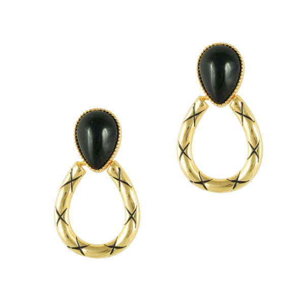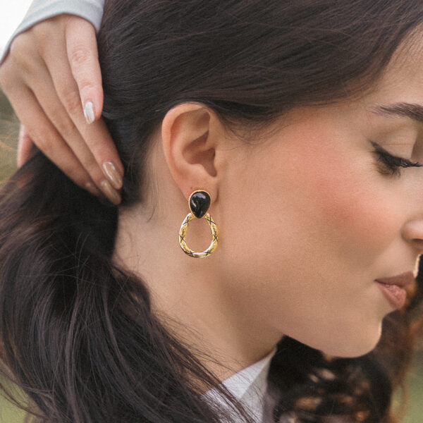 Σκουλαρίκια σε οβάλ σχήμα, διακοσμημένα με λίθο αχάτη και πλεκτό μοτίβο. Διαχρονικό μαύρο και μοντέρνο σχήμα! Το υλικό τους είναι...