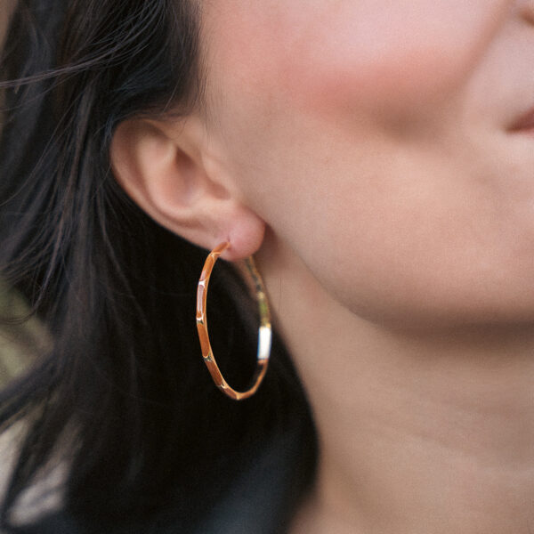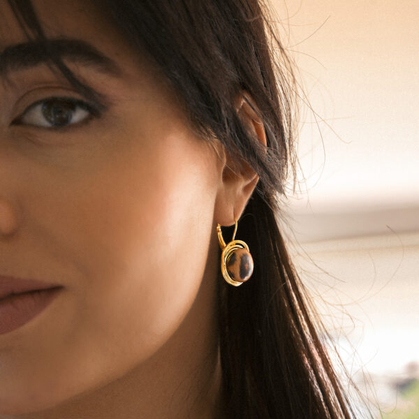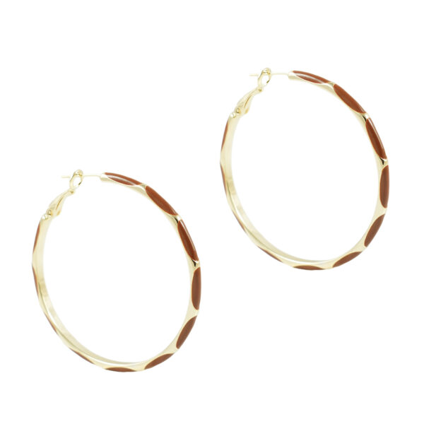Κρίκοι λεπτοί σε χρυσή απόχρωση με καφέ μοτίβο. Ένα μοντέρνο σχέδιο που ξεφεύγει από τα κλασσικά, δημιουργώντας μια άνετη επιλογή...