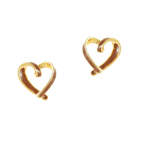 Μικρά, καρφωτά σκουλαρίκια καρδούλες με συνδυασμό χρυσής και καφέ απόχρωσης που δημιουργεί μια “ζεστή”, καθημερινή επιλογή. Είναι κατασκευασμένα από ορείχαλκο...