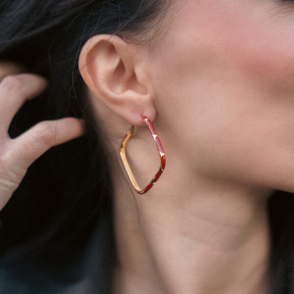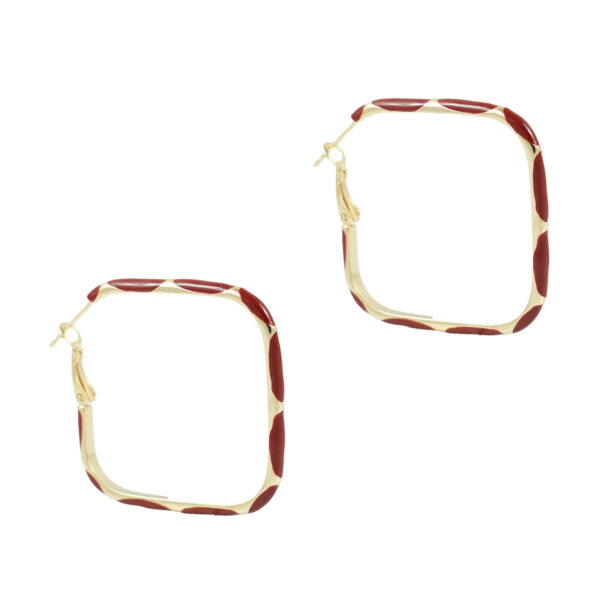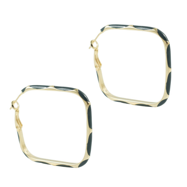Σκουλαρίκια κρίκοι σε γεωμετρικό σχήμα τετράγωνο, με επιφάνεια που δημιουργεί εναλλαγή χρυσής και μπλε απόχρωσης. Το υλικό τους είναι ορείχαλκος...