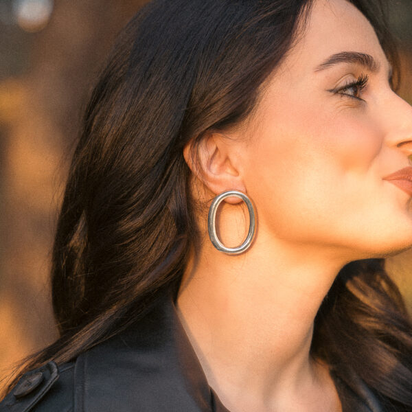 Σκουλαρίκια καρφωτά με γεωμετρικό σχήμα οβάλ, σε ασημί απόχρωση. Διαχρονικά και μοντέρνα με μια απλότητα που επιτρέπει να τα φοράτε...