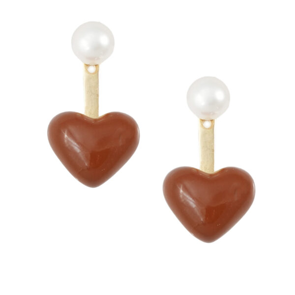 Σκουλαρίκια κατασκευασμένα από ορείχαλκο, με κούμπωμα από ασήμι 925. Μικρές καρδιές σε καφέ απόχρωση που ολοκληρώνονται υπέροχα σε συνδυασμό με...