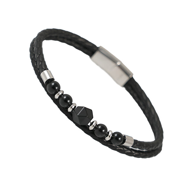 25.00€Ανδρικό βραχιόλι με δέρμα σε μαύρη απόχωρη και μια σείρα από λίθους αχάτη. Total black επιλογή που φοριέται εύκολα.