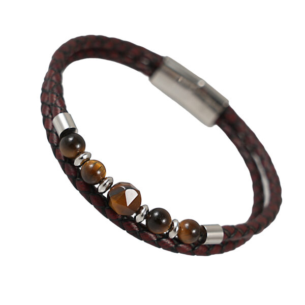 25.00€Δερμάτινο βραχιόλι με χιαστί πλέξη και μια σειρά από λίθους μάτι τίγρης. Οι καφέ χρωματισμοί φωτίζουν ομοιόμορφα το κόσμημα, ενώ...