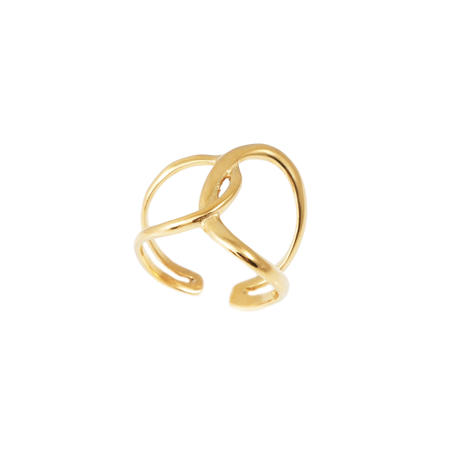 Δαχτυλίδι σε χρυσή απόχρωση, κατασκευασμένο από χειρουργικό, ανοξείδωτο ατσάλι. Διαθέτει μοντέρνο σχεδιασμό με ένα κεντρικό “δέσιμο” να κυριαρχεί. Το υλικό δε μαυρίζει και δε προκαλεί αλλεργίες.