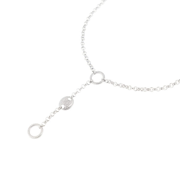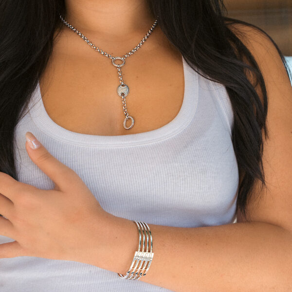 Μια κομψή εναλλαγή πέρλας και ασημί στοιχείου, σε μια αλυσίδα κατασκευασμένη από χειρουργικό, ανοξείδωτο ατσάλι, σε ασημένια απόχρωση.Το υλικό δε προκαλλεί αλλεργίες και είναι ανθεκτικό στο νερό. Διαθέτει προέκταση ρύθμισης μεγέθους.