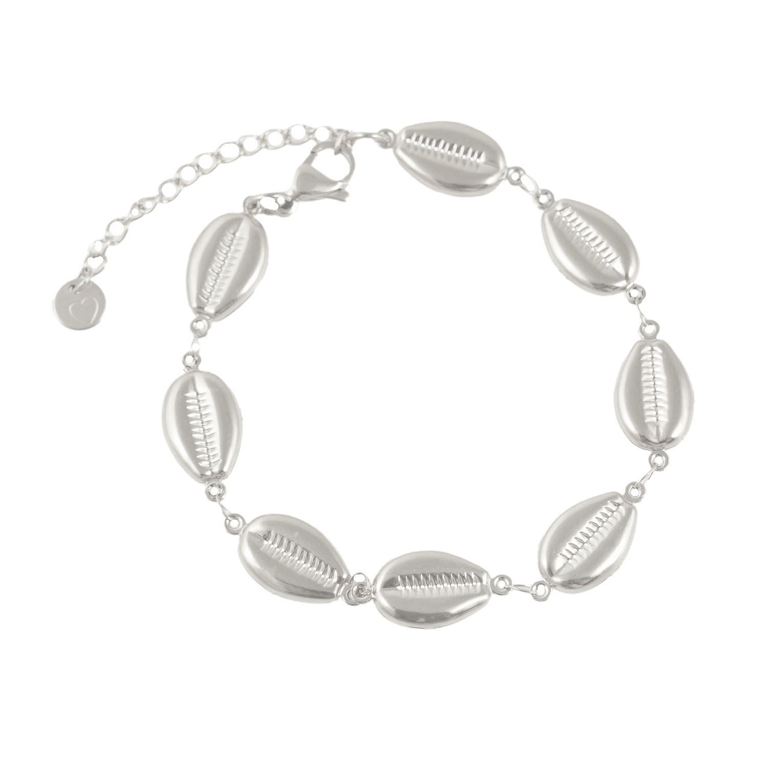 Ένα βραχιόλι γεμάτο κοχύλια δε μπορεί να λείπει από τη καλοκαιρινή σου συλλογή! Είναι κατασκευασμένο από χειρουργικό, ανοξείδωτο ατσάλι σε χρώμα ασημί. Διαθέτει προέκταση και δεν προκαλεί αλλεργίες.