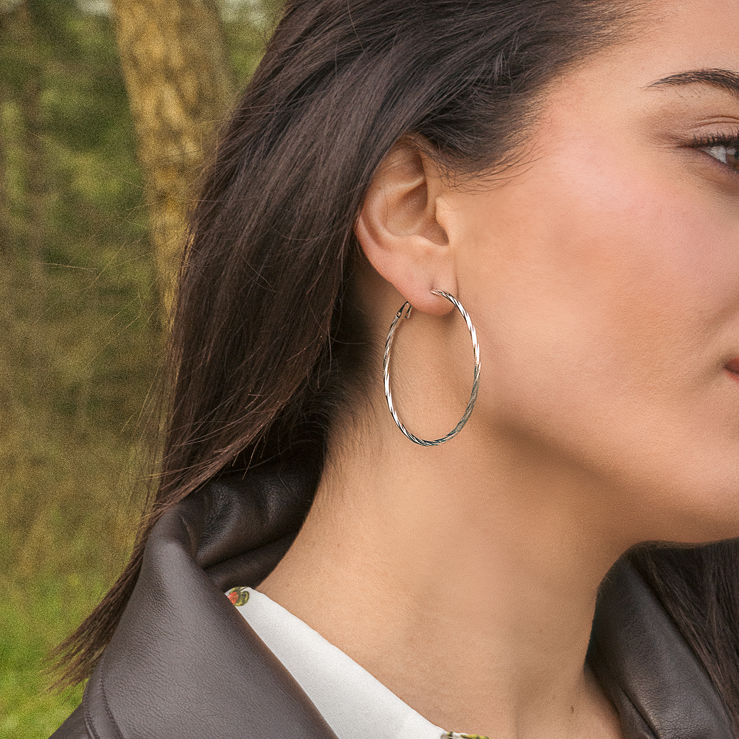 Λεπτοί κρίκοι ασημένιας απόχρωσης, σε μεγάλο μέγεθος, με σαγρέ σχέδιο. Κλασικοί και διαχρονικοί, για να φορεθούν πάντα και παντού!