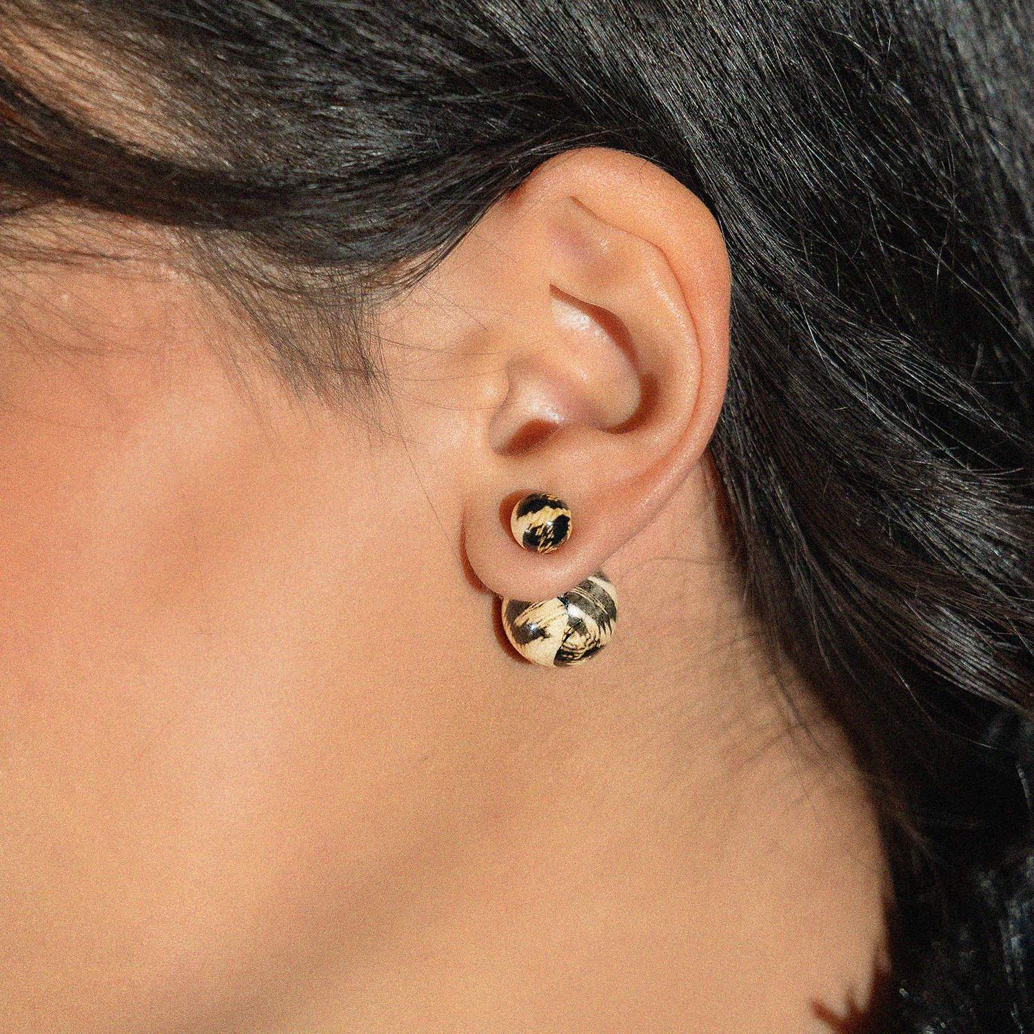Σκουλαρίκια καρφωτά σε σχήμα μπάρας με διπλή όψη και σχέδιο animal print. Είναι ελαφριά, κατασκευασμένα από ορείχαλκο, σε χρυσή απόχρωση και διαθέτουν κούμπωμα από ασήμι 925.
