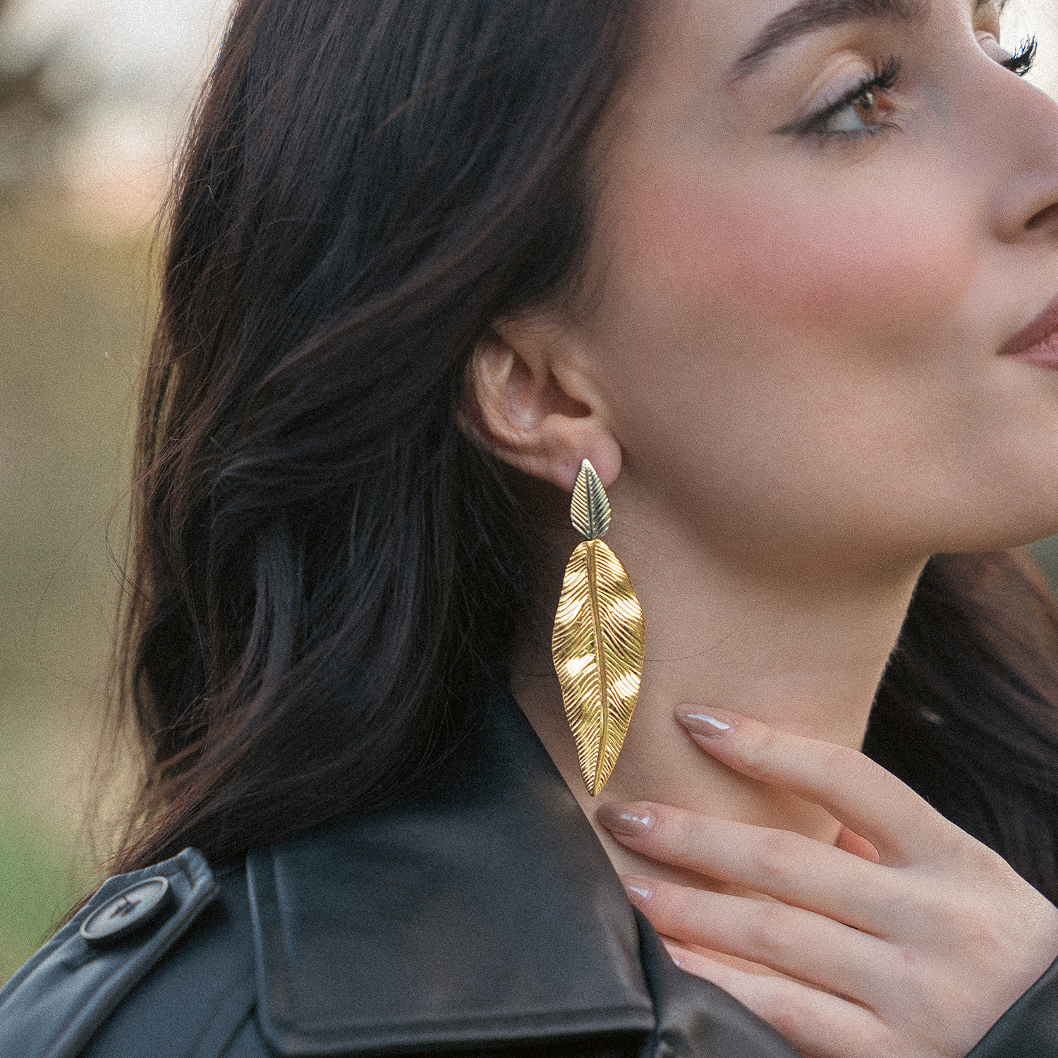 Σκουλαρίκια κρεμαστά, με διχρωμία μετάλλων σε χρυσή και ασημένια απόχρωση. Εντυπωσιακά φύλλα με σαγρέ επιφάνεια, που δημιουργούν ένα μοναδικό κομμάτι από τη mix & match σειρά μας. Το υλικό τους είναι χειρουργικό, ανοξείδωτο ατσάλι το οποίο δε μαυρίζει και δε προκαλεί αλλεργίες.