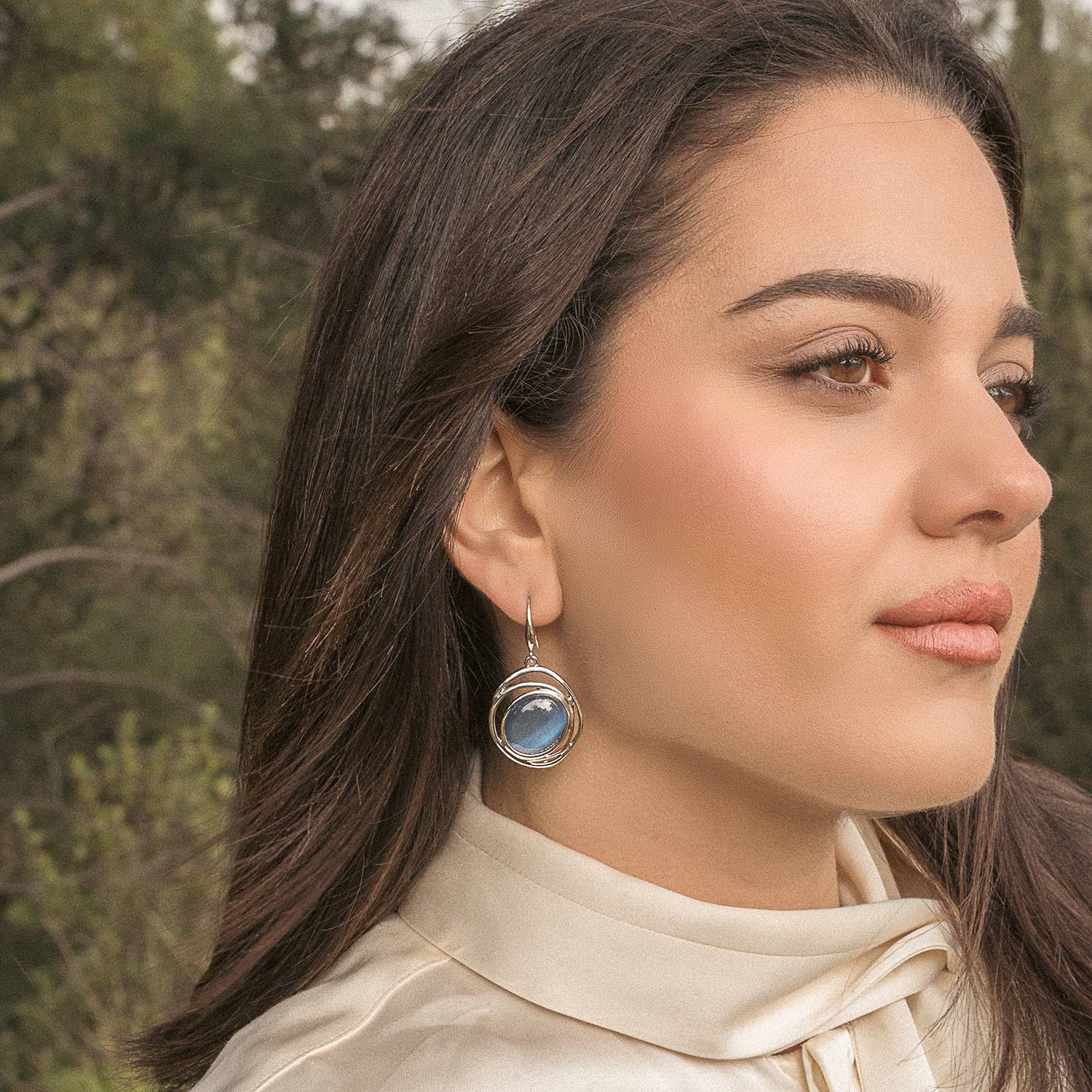 Κρεμαστά σκουλαρίκια, με διπλούς ασημί κύκλους ρητίνης, σε ηλεκτρίκ απόχρωση για μοναδικές εμφανίσεις. Χειροποίητης, ιταλικής κατασκευής σε μεσαίο μέγεθος.